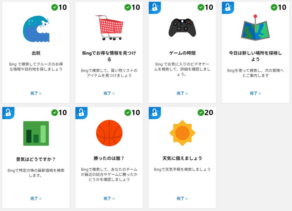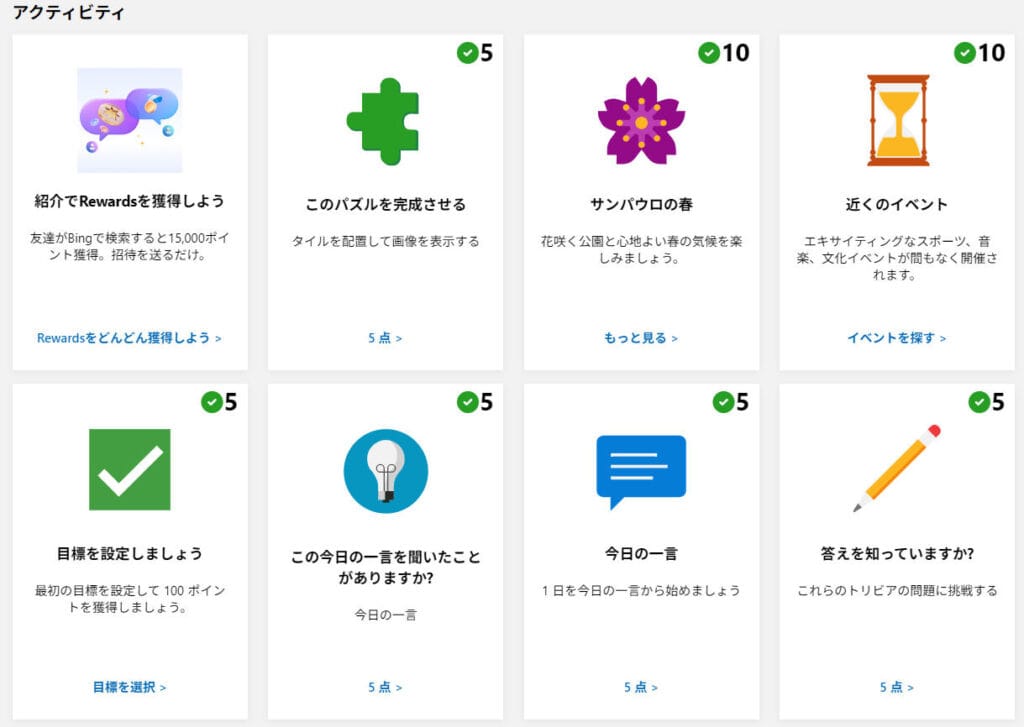 これは、日々の検索活動やデイリーセット、クイズなどをコツコツこなしていれば、それほど難なく達成できる目標です。
