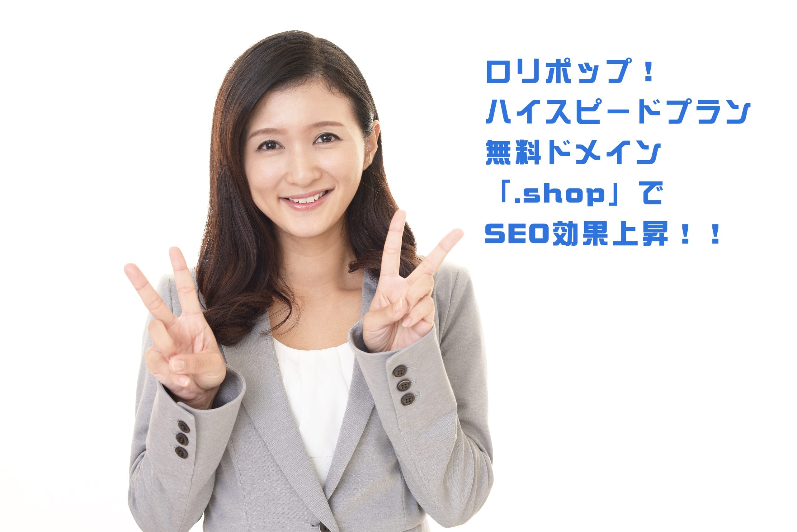 最近は無料ドメインを2つ無料にするところがありますが、ロリポップ!の無料ドメインには、ドメイン選択肢の中に「.JP」「.shop」があるのが大きなポイントです。