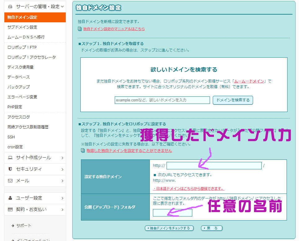 ムームードメインで取得したドメインをロリポップに登録連携します。