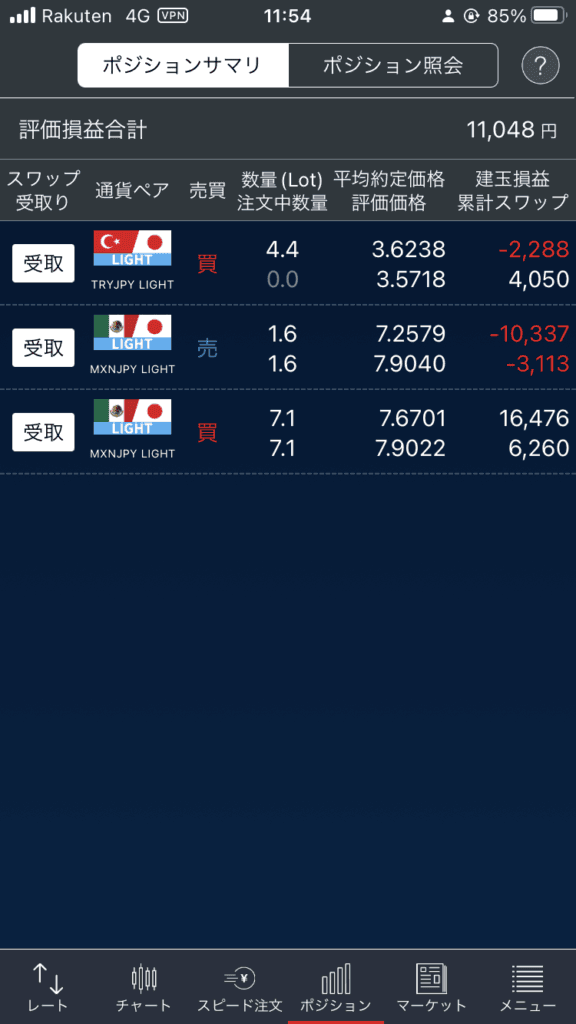 トルコリラとメキシコペソの両方で高金利スワップを狙いつつ、スイングトレードを組み合わせることで、リスクの分散を図っています。これは、私のマイルールの一つです。