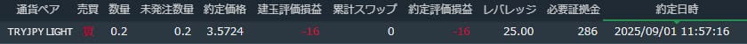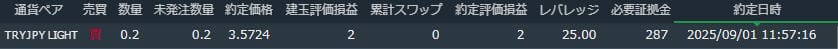 2025.08.01の時点で1.8Lot、平均約定価格3.6533に対して、2025.08.07の時点では、0.6Lot増加、平均約定価格0.0079減少の3.6454となっています。
