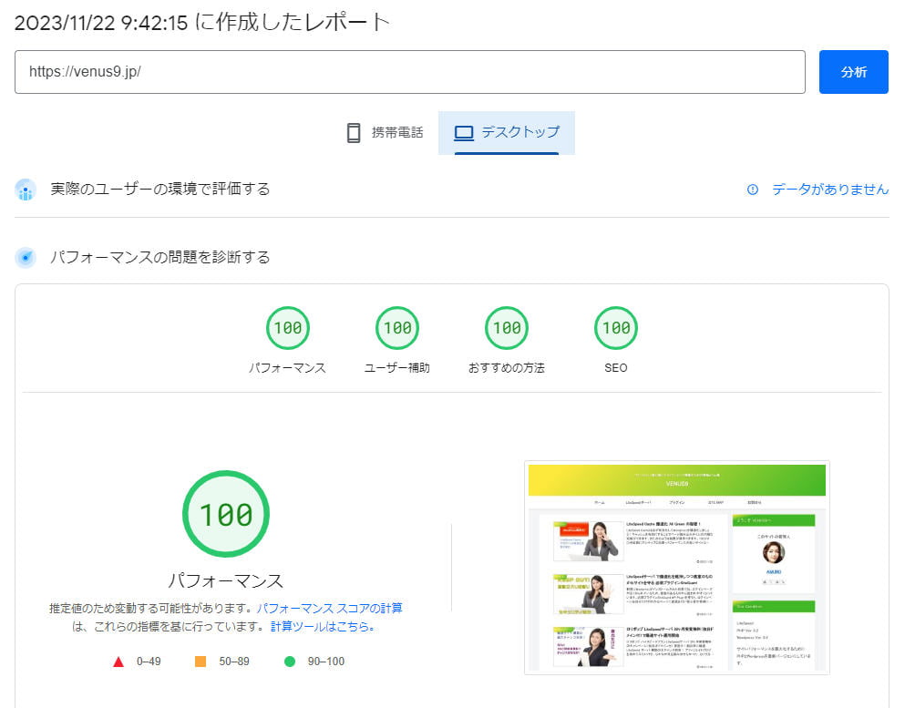 Site Health PageSpeed Insights測定結果 All Green 爆速中!